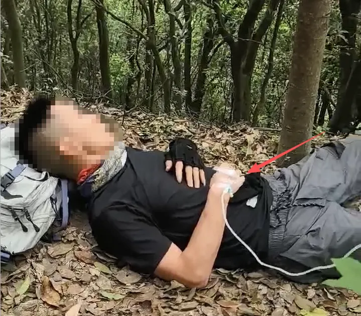 本想叼草耍帅,结果山顶直接打起了吊瓶——这是4月12日发生在深圳阳台山“爱心线”上的一幕。