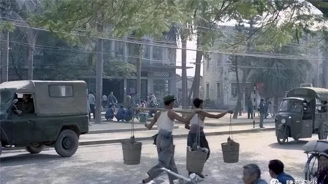 这个画面再普通不过,两个人肩膀上扛着扁担,桶里装着泥水,裤腿卷得高高的,一个脚步飞快,一个看着是老把式,这种挑泥水的劲头,放到今天叫“艰苦创业”,那会儿只是活计,爷爷就说,这活光是看着简单,扁担往肩上一搭,来回一趟就是汗流浃背,晚上回家两臂酸痛,现在再没人用扁担挑建材,全靠起重机和电梯。