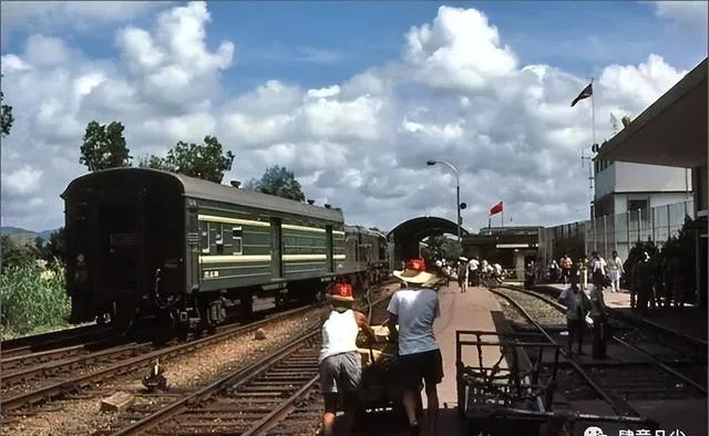 说起火车站,这照片上绿皮车厢一眼能认,顶上那层深色,车窗边一圈银色边框,等车的人穿着单衣草帽,有的推着板车往前赶,远处的旗子飘着,阳光暴晒得地面反光,一拨拨人下车、有人抬头找站牌,火车鸣笛拉长了整个夏天的酷热和急促,小时候我妈总说,“那火车一听就知道是远路来的,声音沉”,现在高铁一站就是新城市,那样的火车几乎看不到了。