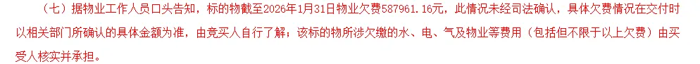 截至2026年1月31日,这套房已经欠了58.8万元物业费,加上滞纳金还在滚,全得买家掏。