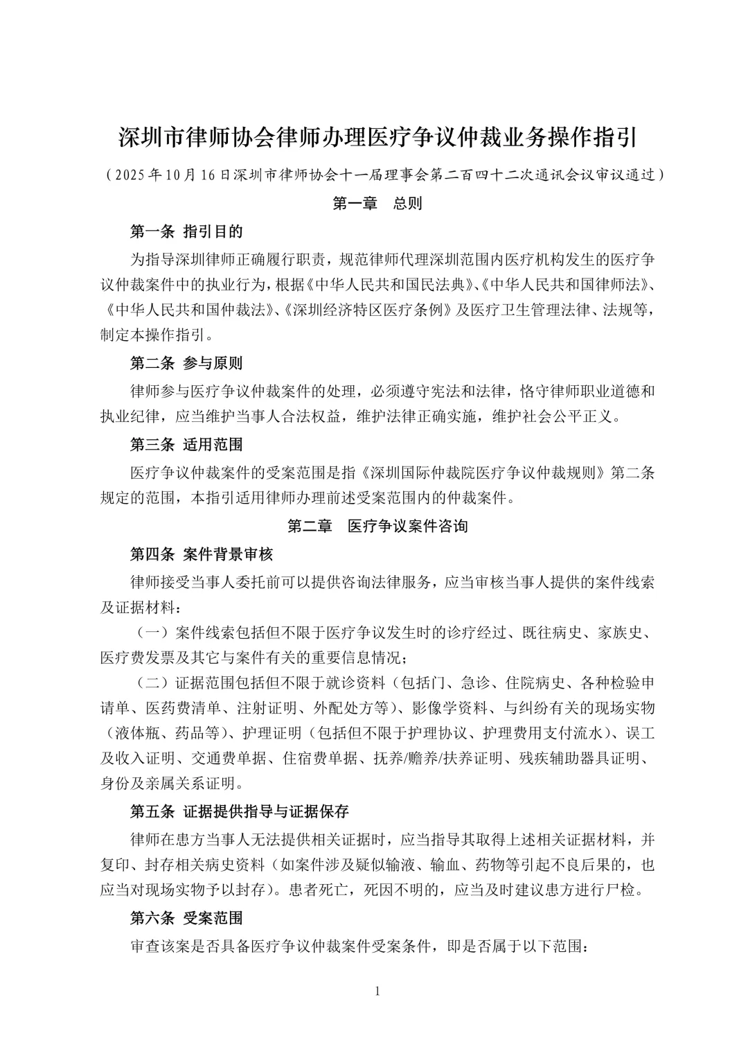 当前位置:首页>深圳>深圳市律师协会律师办理医疗争议仲裁业务操作指引(2025)