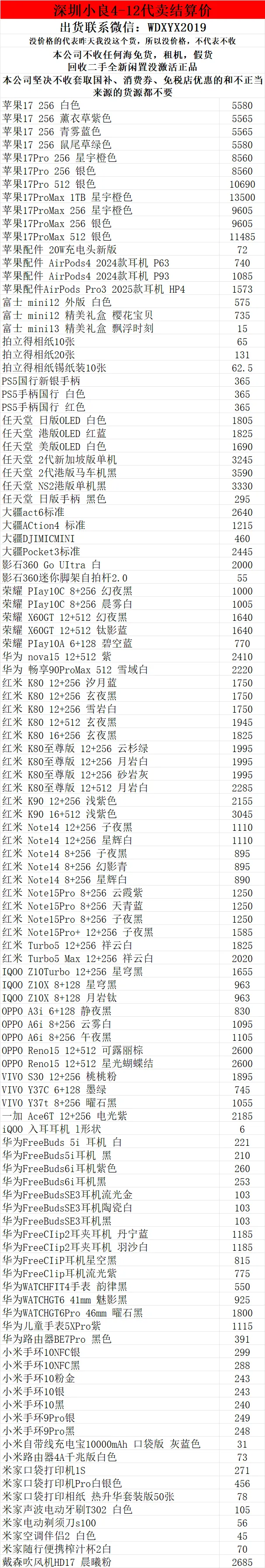 >深圳小良2026.4.12电子产品代卖结算价(美妆价格小程序查看)