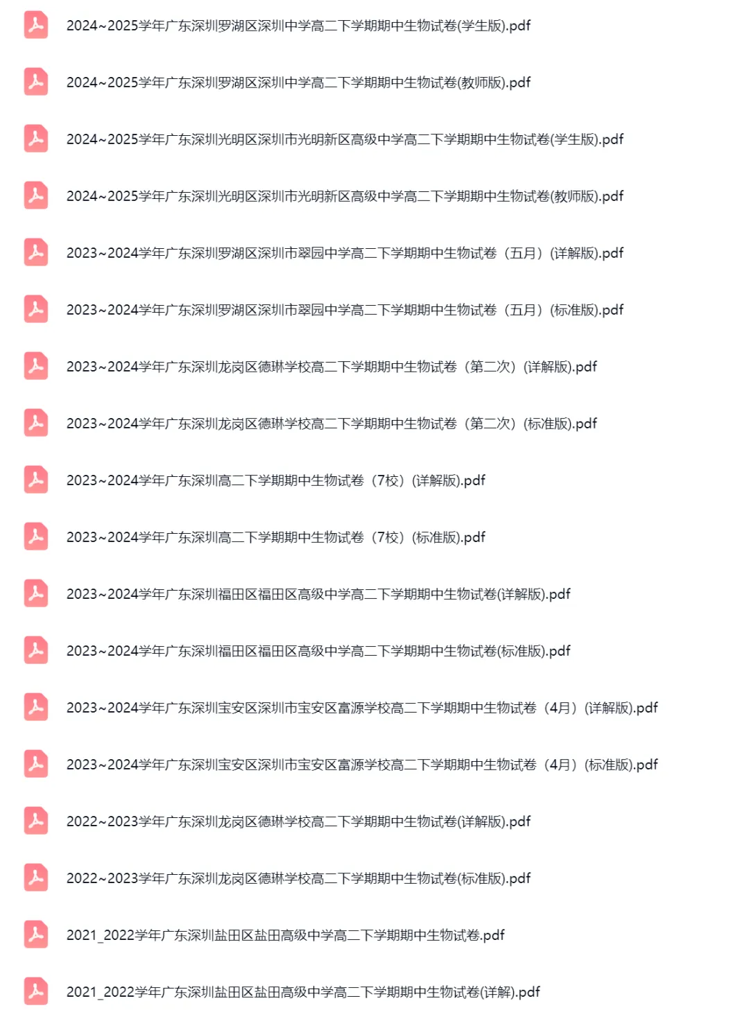 >40套2015-2025学年广东深圳高二下学期期中生物试卷及答案解析