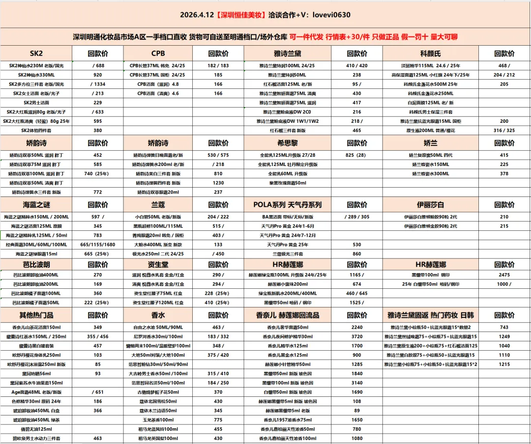 2026.4.12深圳恒佳美妆结算价(明通一手档口直收)