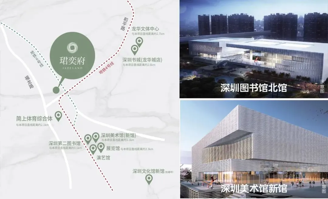 项目距地铁4号线龙胜站约500米,步行约6分钟可达,3站直达深圳北站,5站速达福田CBD。同时距6号线元芬站约800米。深大城际线龙胜站预计2026年开通运营,3站直达宝安机场东,将进一步打开跨区域通勤通道。周边布龙路、福龙路双主干道环绕,规划中的侨城东路北延线若建成,将更快速连接南山、科技园。克而瑞测评中该项目在地铁通达性指标上居龙华大浪板块第1名。