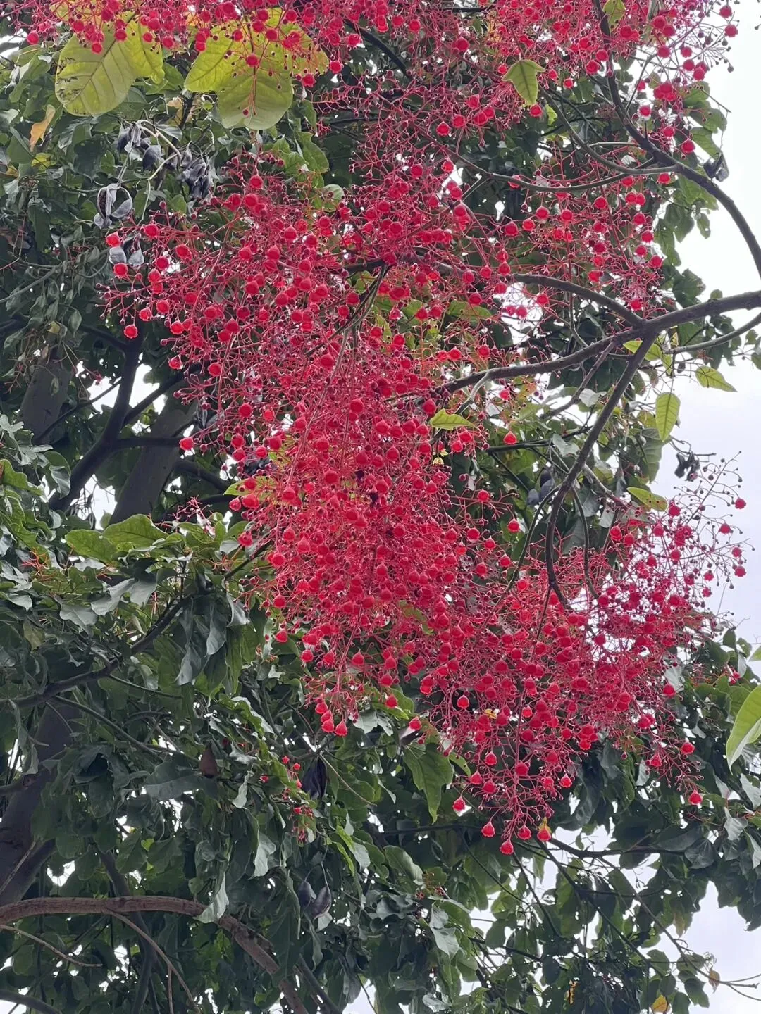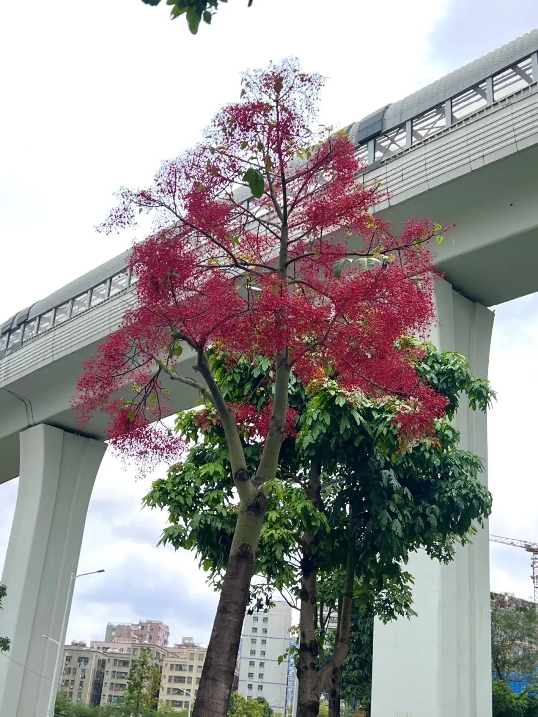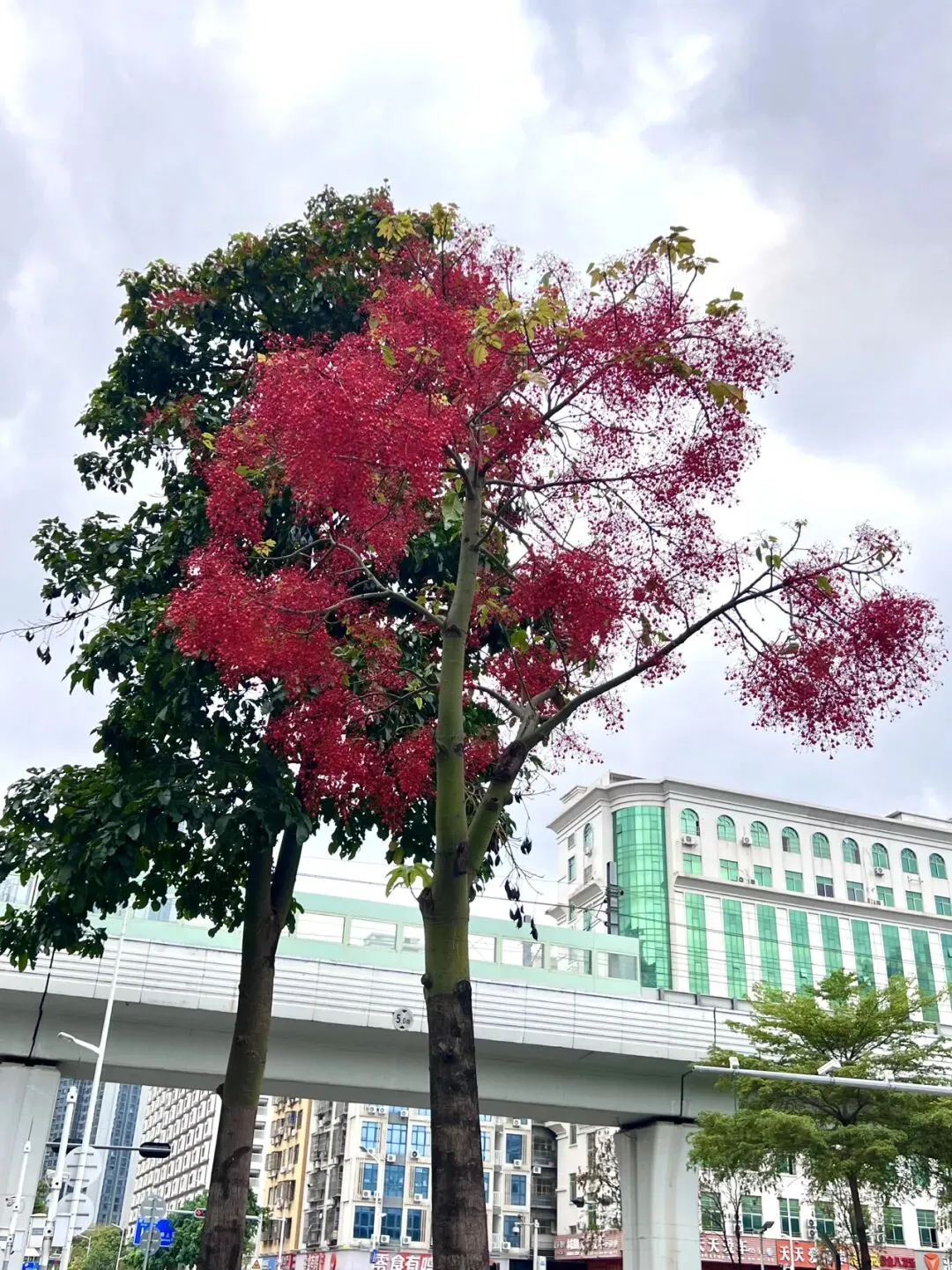 这种高大的乔木是萍婆,又叫七姐果、凤眼果。这段时间,在深圳,看到一树红花,你会不会像搞姐一样,围着花树,看了又看,拍了又拍?