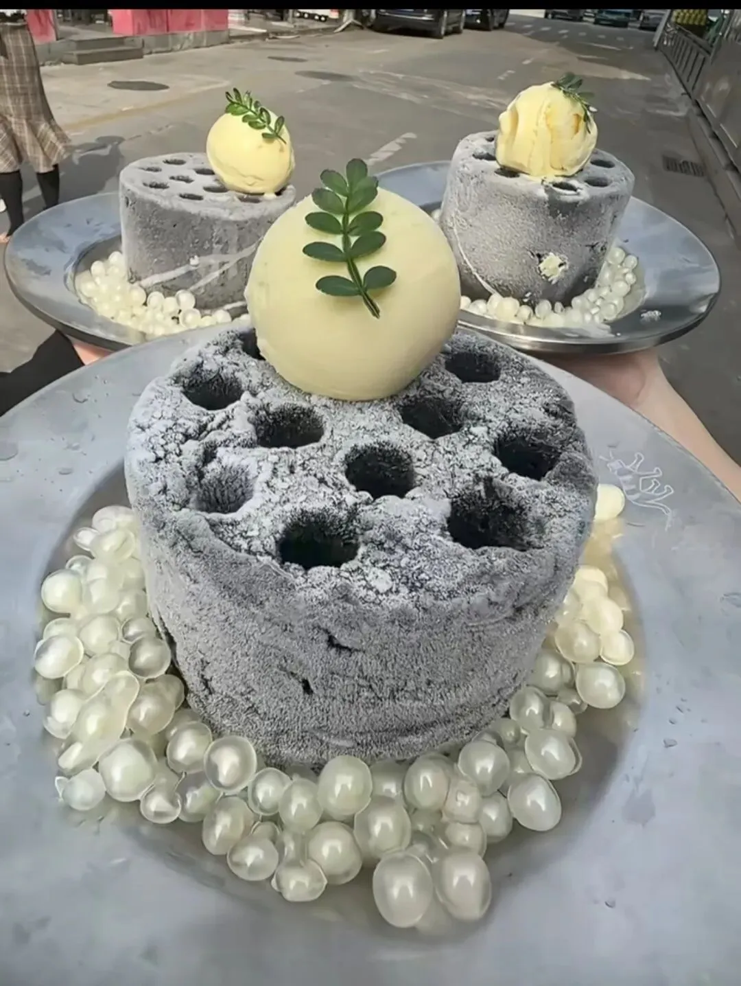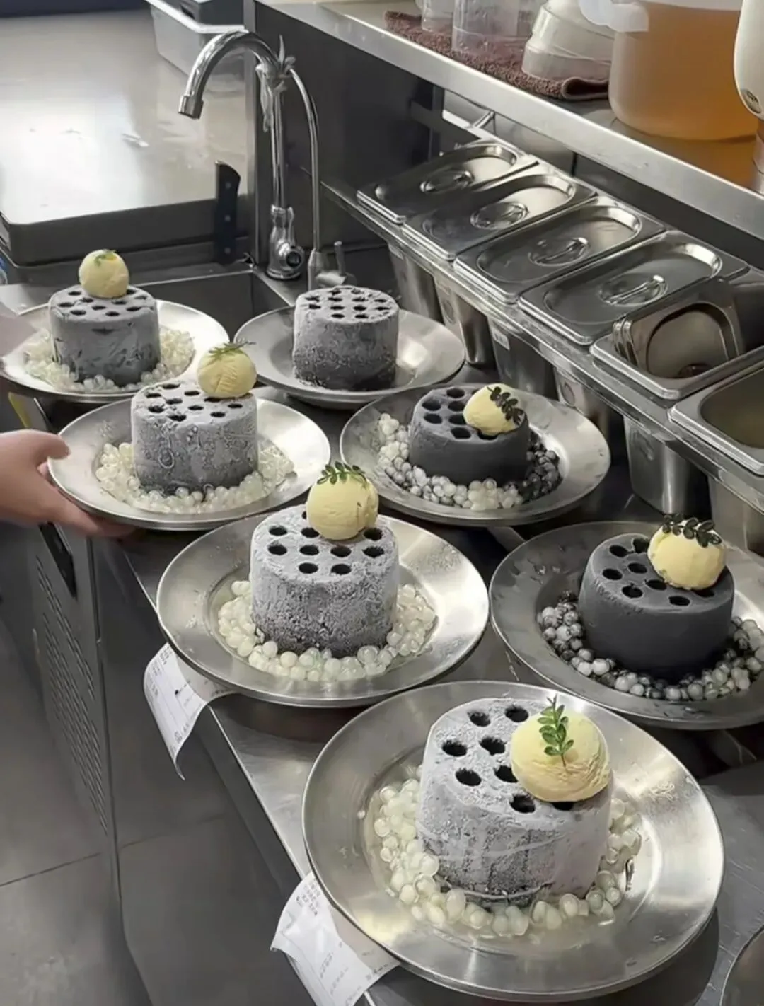 这造型也太敢玩了。谁能想到把主食做成蜂窝煤的样子?第一眼觉得搞笑,第二眼觉得亲切,第三眼居然有点想尝尝。