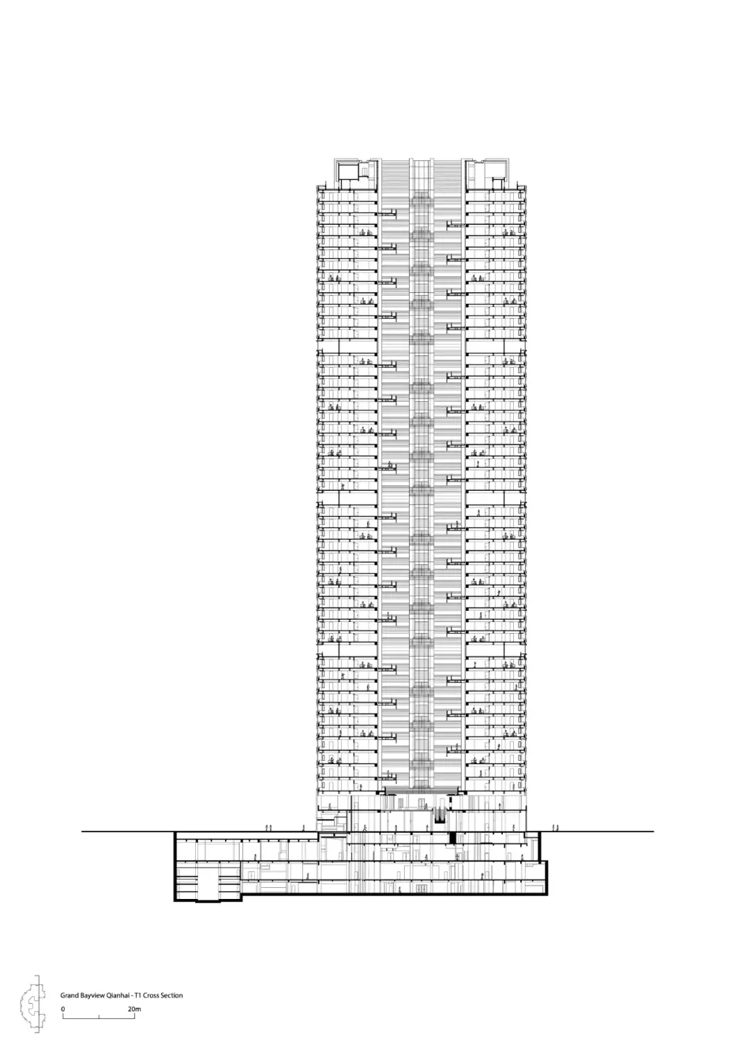 公寓单元设计极为灵活,未来可进行合并。模块化施工实现了预制装配,节省了时间并确保了质量控制。该项目通过在施工中尽量减少混凝土的使用,降低了隐含碳排放。整个地上超高层结构均采用轻型钢材,并在附近地区制造。建筑幕墙也最大化的采用了由工厂生产组装的预制单元模块系统。