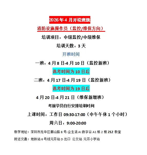 (1)消防设施监控操作方向:设施巡检、报警信息处理、火灾自动报警系统操作及保养、自动喷水灭火系统操作及保养、防烟排烟系统操作及保养、气体灭火系统操作及保养、其他消防设施操作及保养。