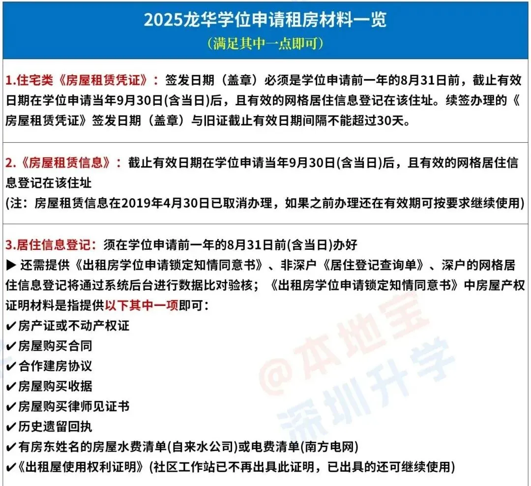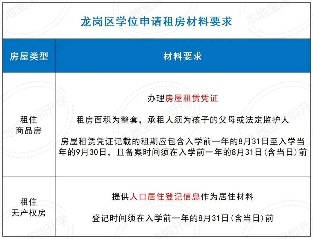 在往年,龙华龙岗的租赁凭证/居住登记办理截止时间是最晚的,都是学位申请前一年的8月31日前办理好就行