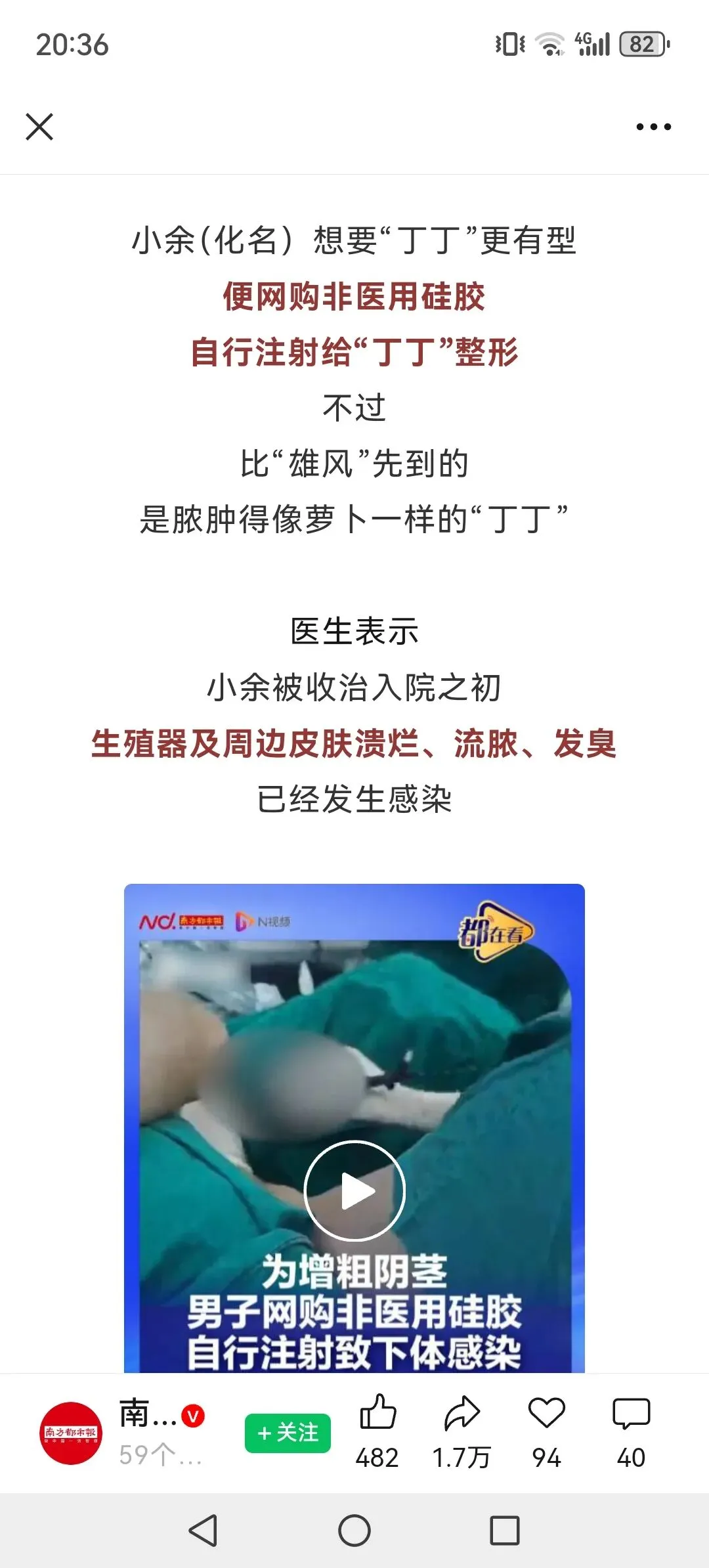 深圳一男子为变粗大,网购硅胶自行给“丁丁”注射,导致下体溃烂.我们要敬畏生命,远离无知,这是一场被虚荣与面子毁掉的男性健康悲剧!