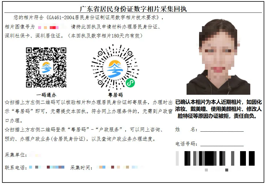 - 居住证数码相片采集回执
