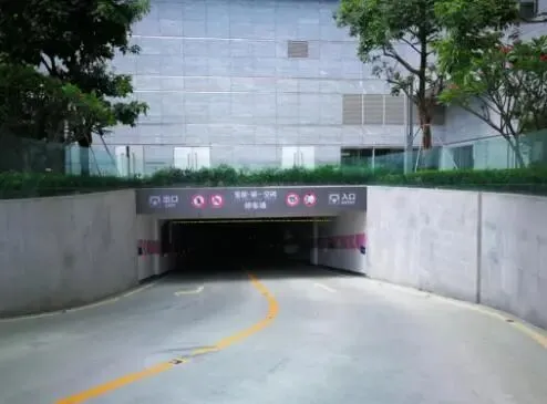 6. 按 停车场 指示牌,右拐进地下车库入口