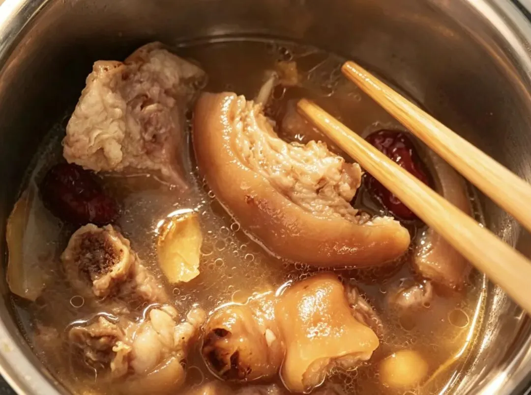 当我把猪脚冷水下锅,看着浮沫慢慢浮起,又仔细冲洗干净;当我把花生提前泡发,和姜片、红枣一起放进锅里,高压;当厨房渐渐飘出肉香,猪脚的胶质慢慢融化在汤里,花生的香气混着肉香漫满整个小出租屋——那一刻,所有的压力、焦虑、职场的委屈,都随着这锅热气腾腾的汤,烟消云散了。