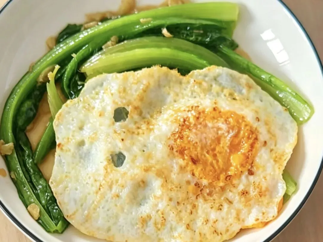 油麦菜,用蒜末清炒,脆嫩爽口,再配上一个煎得金黄的荷包蛋,蛋黄流心的瞬间,就是最治愈的画面。