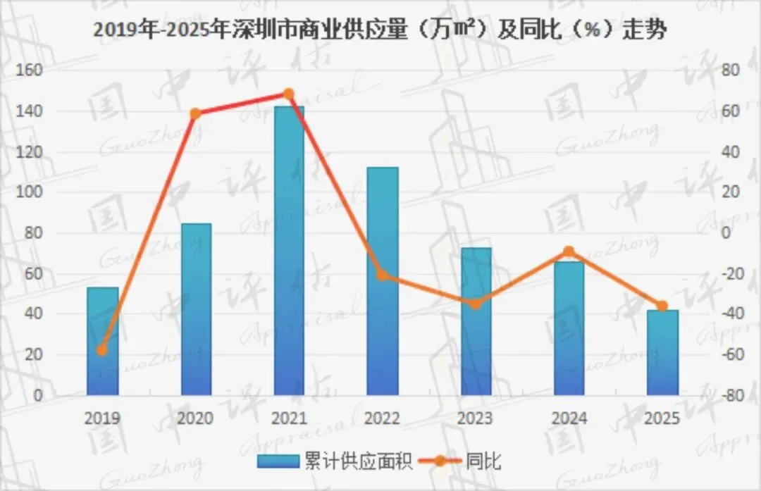 2025年,深圳商业月均新批上市面积为3.5万㎡,同比下降36.2%。