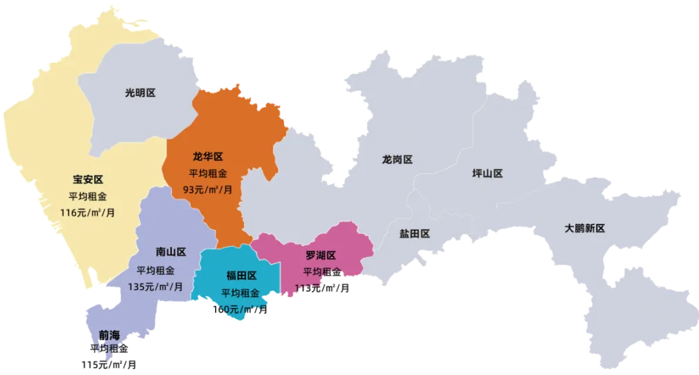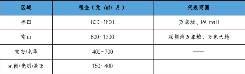 从区域维度来看,2025年末深圳市商铺租金呈现清晰的梯队分布,与各区域的商业成熟度、人口密度、消费能力及产业支撑高度相关,具体如下: