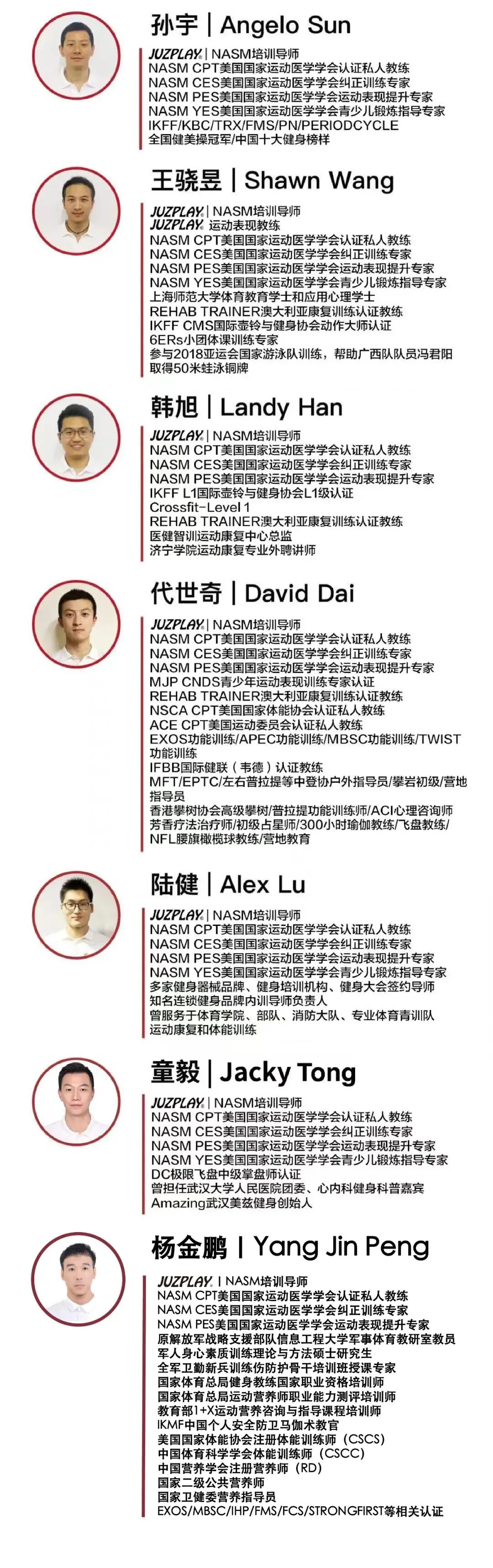 作为首家引进国际四大运动教育认证之一的NASM的代理机构和独家授权官方指定教材翻译审校成员,JUZPLAY®️自2014年起,陆续在全国多个城市举办了过百期NASM课程,帮助数千名私人教练拿到国际专业认证证书,极大地提升了教练群体的执教水平,拓宽了职业空间。