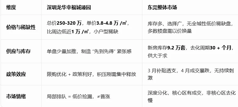 龙华大部分楼盘,尤其是大户型高价盘依然去化慢、要打折促销,没有全面排队、涨价的情况,深圳全市新房库存仍高、二手房挂牌量大,供大于求的基本面没改变,不具备全面大涨的基础。