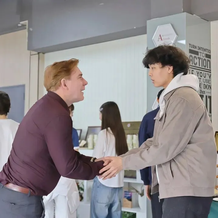 哈萨克斯坦学生抵达我校后,一场温馨的欢迎仪式在接待大厅举行,外教与我校学生代表一同出席,用热情的笑容和真诚的问候,迎接这群远道而来的朋友。
