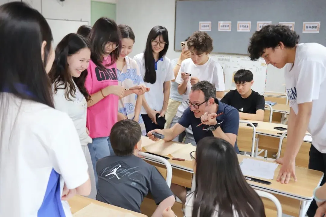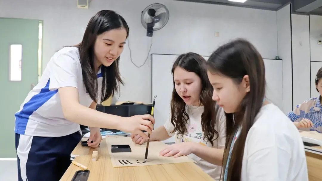 在为期近两周的学术交流中,福景外国语学校为哈萨克斯坦学生设计了一套横跨科学、文化、语言与艺术的融合课程。这是一次有体系、有目标的学术对话——让异国学子在动手实验中理解科学逻辑,在非遗手作中感知文化温度,在语言学习中建立沟通的桥梁。