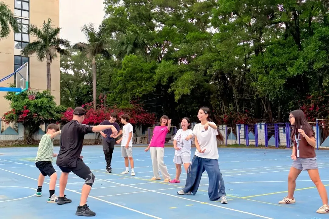 课堂之外,升旗仪式上的国歌声、篮球场上的欢呼声、学生会成员陪伴下的每一顿餐食、晚自习时与中国师生一起游戏团建的笑声——这些零散的片段,拼凑出他们在福景最真实的日常。
