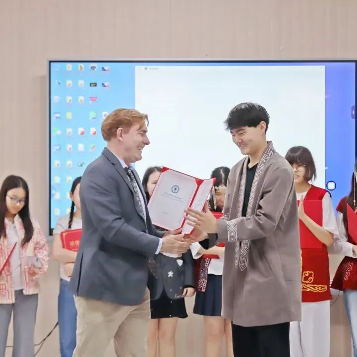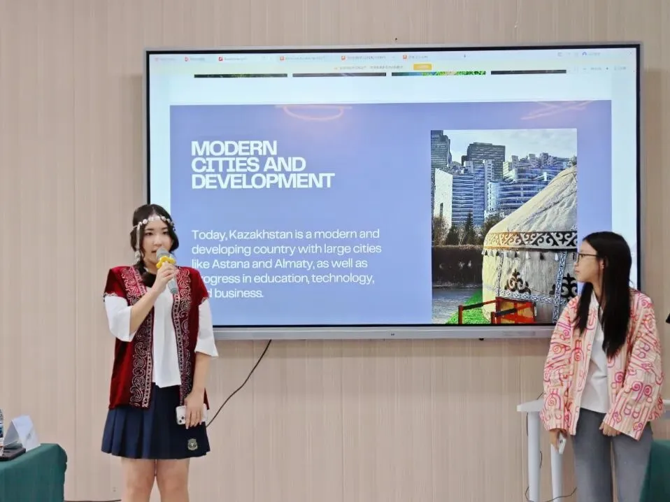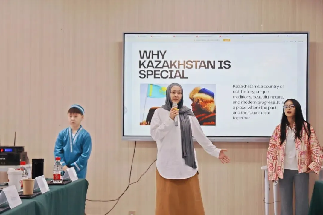 额间银饰轻摇,哈萨克民歌悠扬响起。结营仪式上,身着传统服饰的同学们分享着访学之旅的满满收获,介绍国家特色,并向福景师生发出热情邀请。