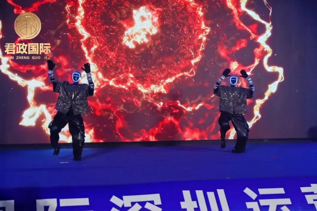 盛会在机器人舞蹈《火力全开》中震撼拉开帷幕,灵动炫酷的科技表演,将前沿科技与艺术魅力完美融合,瞬间点燃全场氛围,奏响了本次启动会的激昂序曲。科技感满满的开场,不仅展现了君政国际紧跟时代、创新赋能的发展理念,更让全场家人感受到品牌奔赴新征程的澎湃力量。