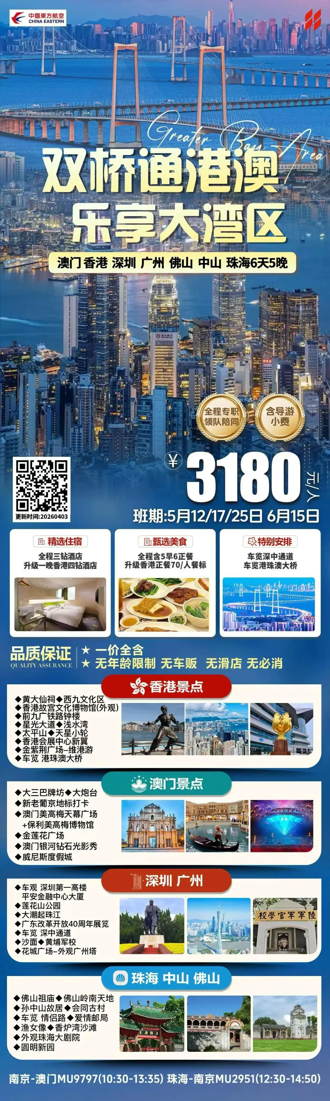 >南京出发香港澳门深圳广州中山珠海6天3180元