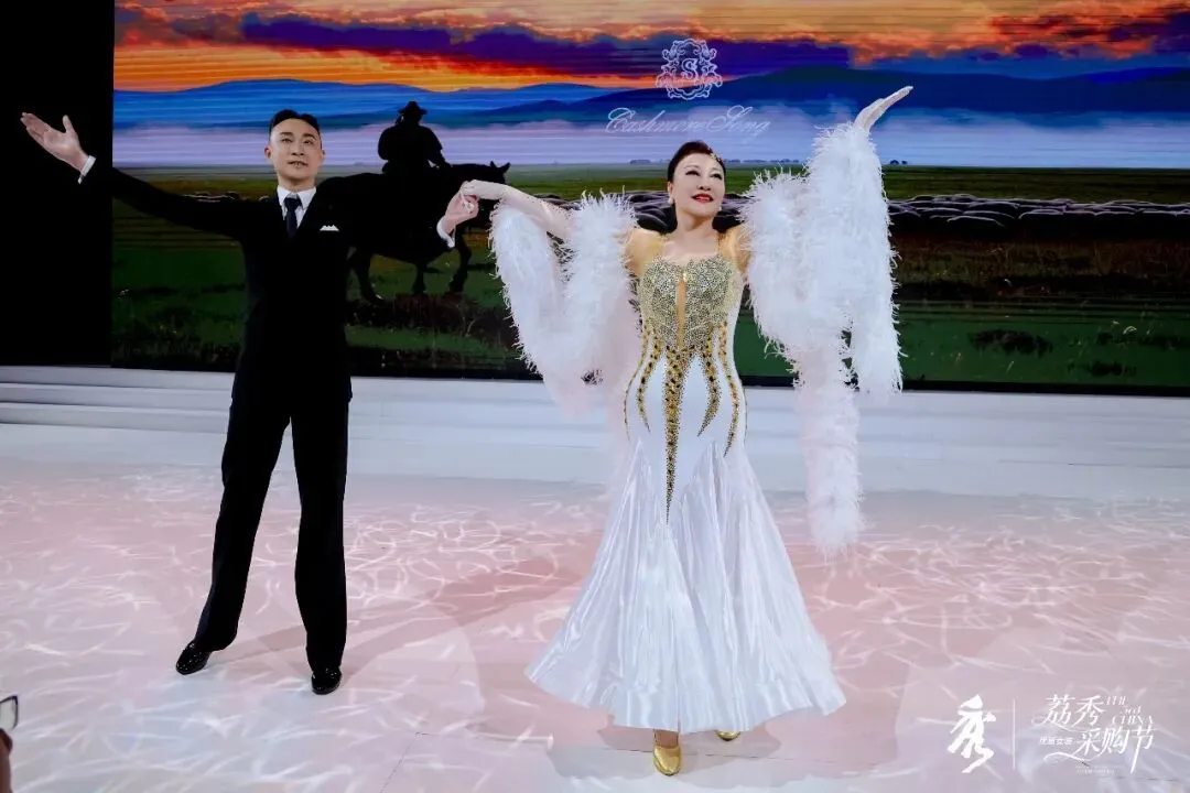 19时许,深圳高端羊绒品牌“卡诗米娅”压轴大秀正式上演。我会会员、“卡诗米娅”品牌创始人兼总设计师宋红,身着蒙古族民族服饰最先登场,随后深圳各界精英女性纷纷身着最新一季作品亮相T台,在澎湃的乐声中,为现场观众展示了中国羊绒的高端华丽之美。此次“卡诗米娅”大秀,还创新将秀场内容与拉丁、探戈、桑巴等舞蹈有机结合,将时尚与国际舞混搭碰撞,热燃不已。
