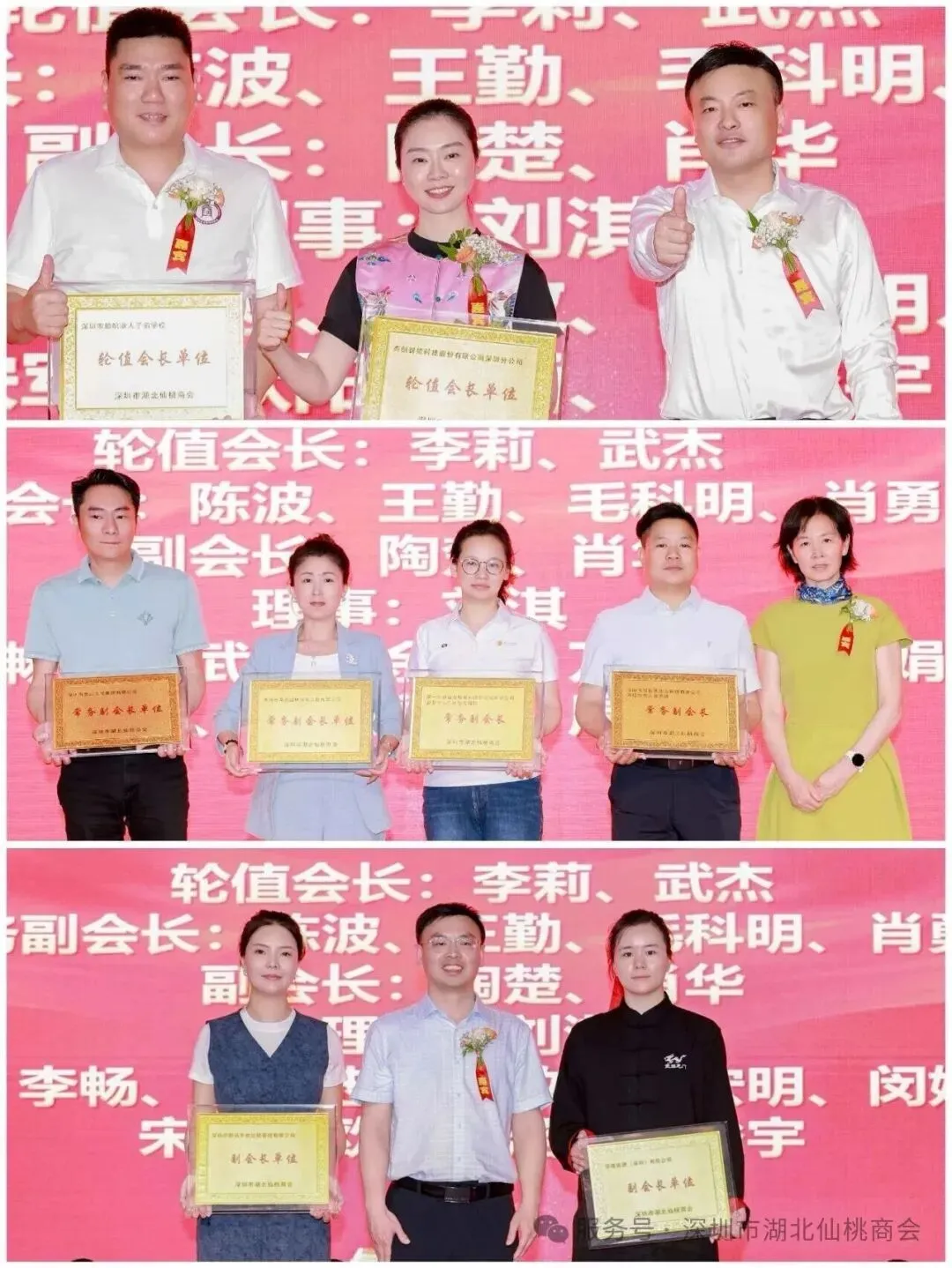 春茗会正式启幕后,主持人逐一介绍莅临现场的各级领导与嘉宾,随后举行庄重的授牌仪式。现场公布新任轮值会长、常务副会长、副会长、理事及新入会会员名单,授牌环节严谨有序、意义非凡:仙桃市委常委、副市长唐江平为轮值会长授牌,仙桃市人大常委会副主任李爱红为常务副会长授牌,仙桃市政府党组成员胡敏捷为副会长及理事授牌。一块块承载信任与重托的牌匾,为商会发展注入新鲜血液、壮大奋进队伍,进一步强化组织建设、夯实发展根基,激励全体会员以崭新姿态凝心聚力、实干担当,携手推动商会各项事业再上新台阶。