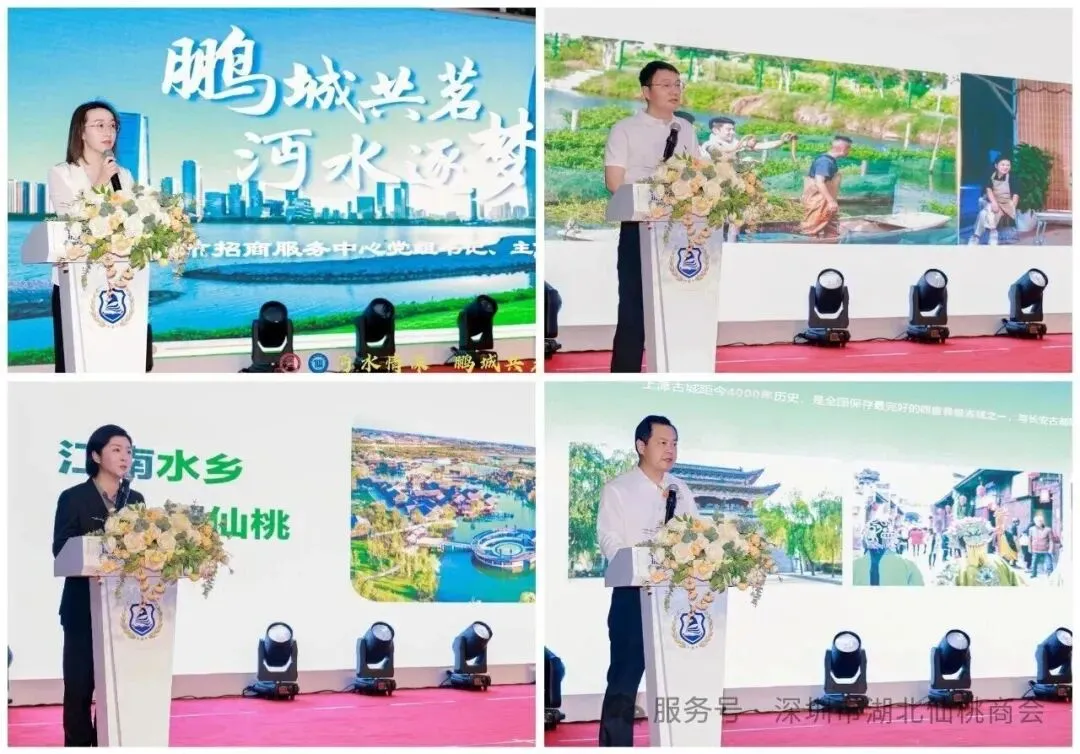 盛会特设重磅招商推介环节,全方位搭建深仙协同、跨区域合作桥梁。仙桃市招商服务中心党组书记、主任牛倩全面推介仙桃投资环境,详解产业政策、园区载体与发展机遇,展现家乡强劲发展势能;仙桃市农业农村局党组书记、局长付永飞推介特色农业产业,凸显江汉鱼米之乡资源禀赋与农产品优势;仙桃市文旅局党组副书记、副局长余玉蓉推介文旅资源,展现沙湖湿地、梦里水乡等水乡风情与人文底蕴。十堰市郧西县人大副主任徐朝晖作郧西招商推介,拓展跨区域合作空间。四场精准推介全面展示家乡与合作区域的发展潜力,激发乡贤反哺故土、跨界合作的热情,为产业对接、项目落地注入强劲动能。