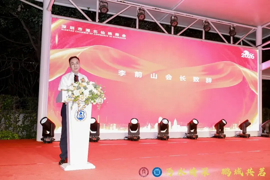 李前山会长现场深情致辞,回顾商会十四年风雨兼程、砥砺奋进的发展历程,感恩深仙两地党委政府、社会各界及兄弟商会的鼎力支持,致敬全体会员的同心坚守。他表示,商会始终以服务会员、凝聚乡情、赋能企业、助力家乡为核心使命,已成为在深沔商温暖家园与坚强后盾。他号召全体会员抢抓深圳科技创新与产业升级机遇,坚守发展理念,抱团奋进、实干兴业,持续深化服务体系、拓宽合作版图、强化党建引领,全力打造沔商优质品牌,携手仙桃中学深圳校友会,为深仙两地经济社会协同发展、商会高质量发展不懈奋斗。