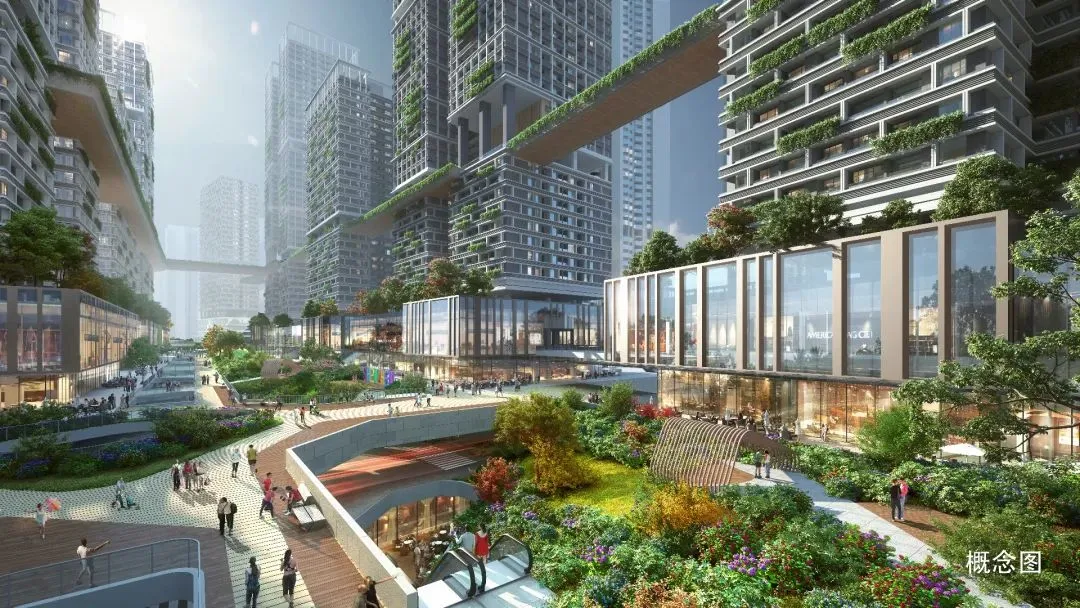 自带超40万m²城市旗舰级商圈,涵盖国际购物中心、立体生态街区、地下步行街、高端社区 Mall 等全业态、全场景,一条1.2公里中央绿轴串联各业态空间,形成集购物、旅游、文娱为一体的城市新潮打卡地。