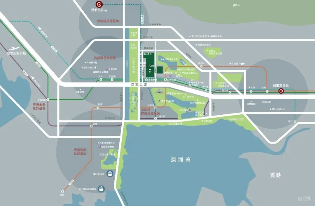 绿景白石洲位处深圳 gdp 首区南山区的核心地段,深南大道横轴和大沙河科创走廊纵轴交汇的超级十字轴心,链接四大总部基地,聚合城市发展能量,为未来总部基地规划的精英技术人才打造高端生活配套区,代言深圳价值高度。