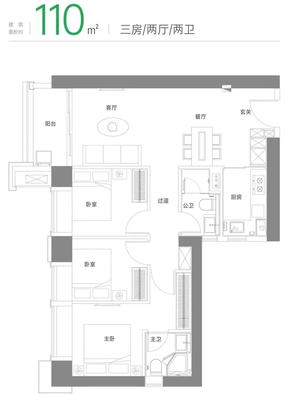 建面约110m²三房两厅两卫