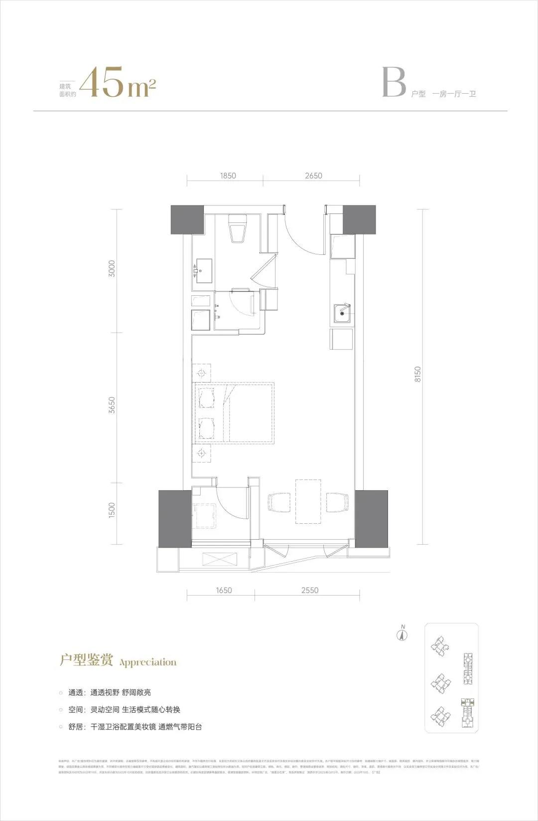 横向创新户型,超宽向阳尺度,吸纳阳光新风主卧私享化,独立卫浴、衣帽间,自在天地一隅四开间朝南,卧室大飘窗,在阳光中享受美好栖居南北双阳台,一面晾晒收纳,一面休闲享受,精彩不止