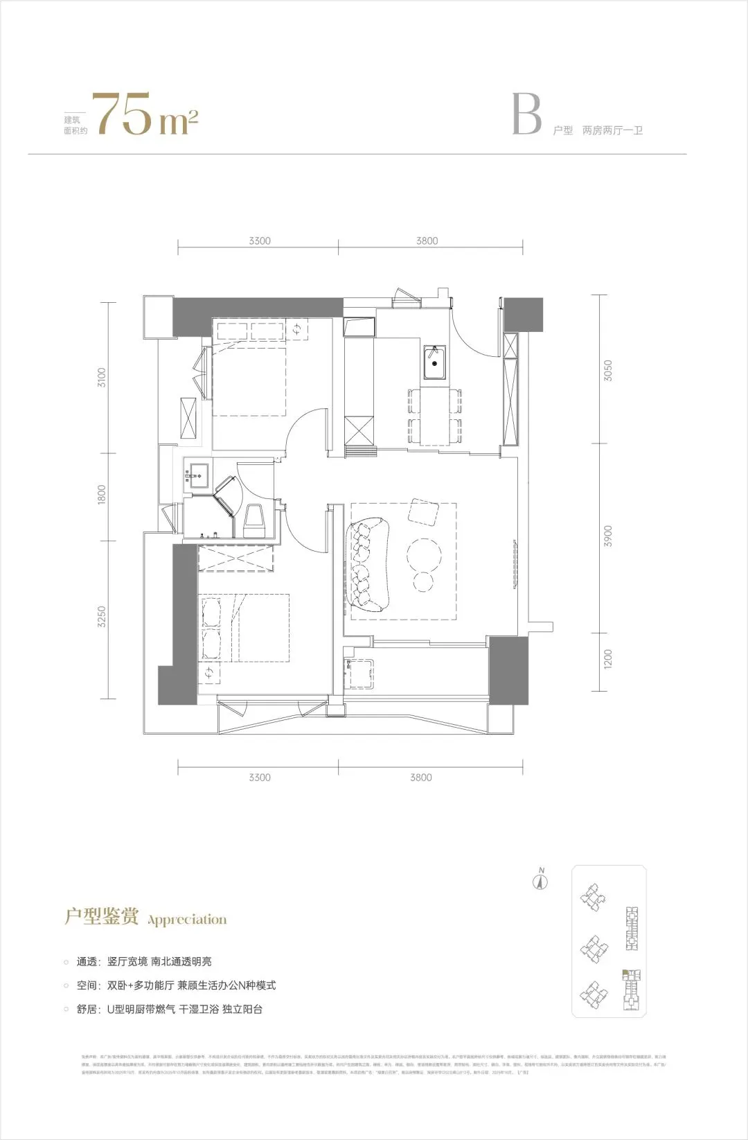③ 125㎡3房2卫:809套(A户型646套+B户型99套+C户型64套)