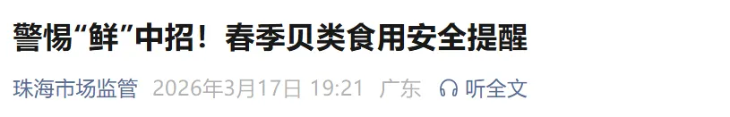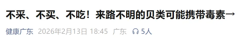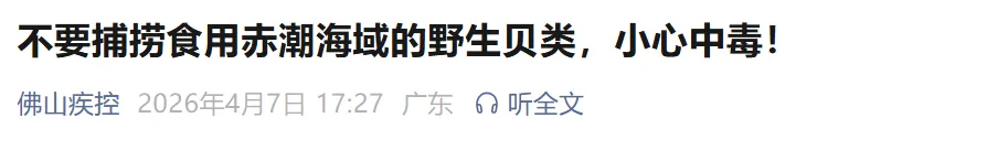 近期,多地疾控、市场监管部门发布贝类食用风险提示,提醒市民朋友不要捕捞、购买、食用野生贝类,谨防中毒。