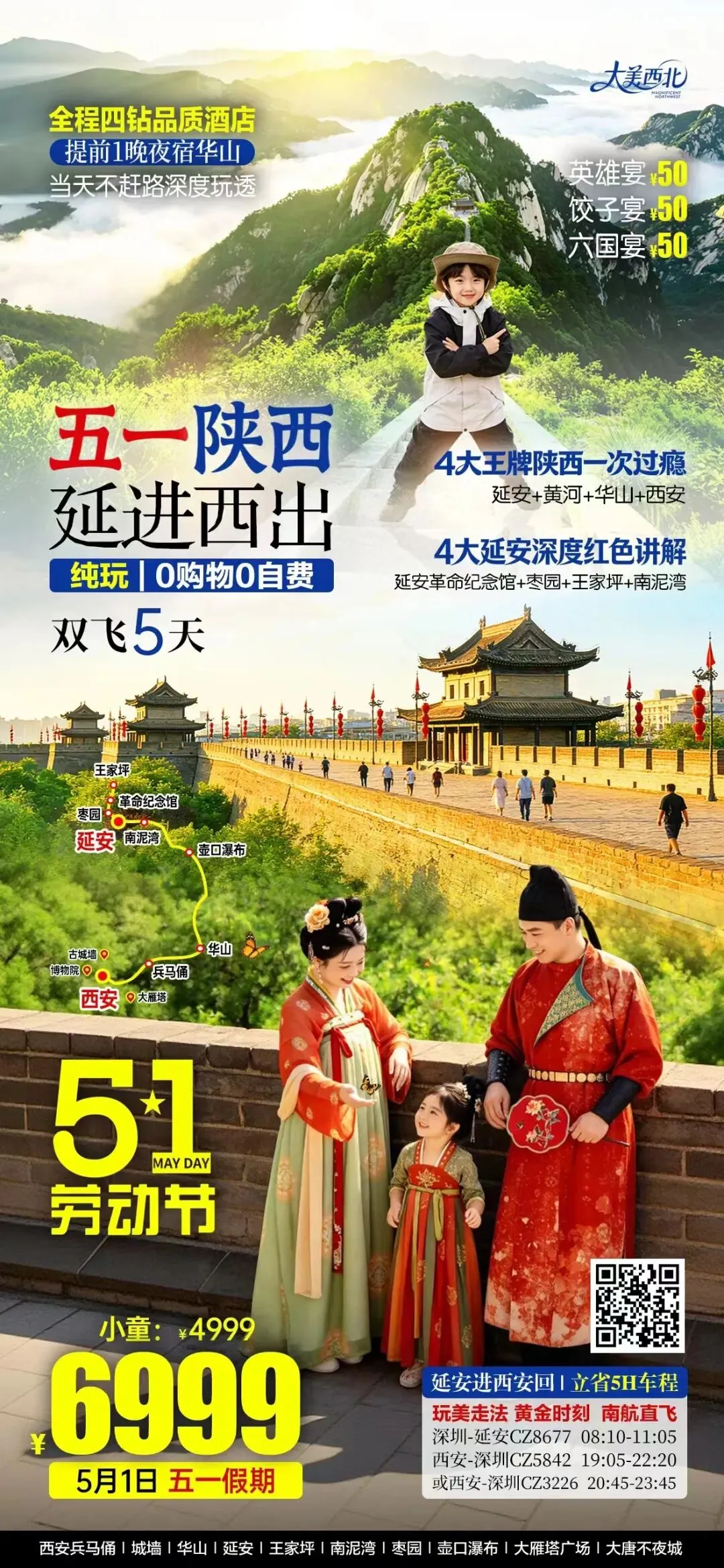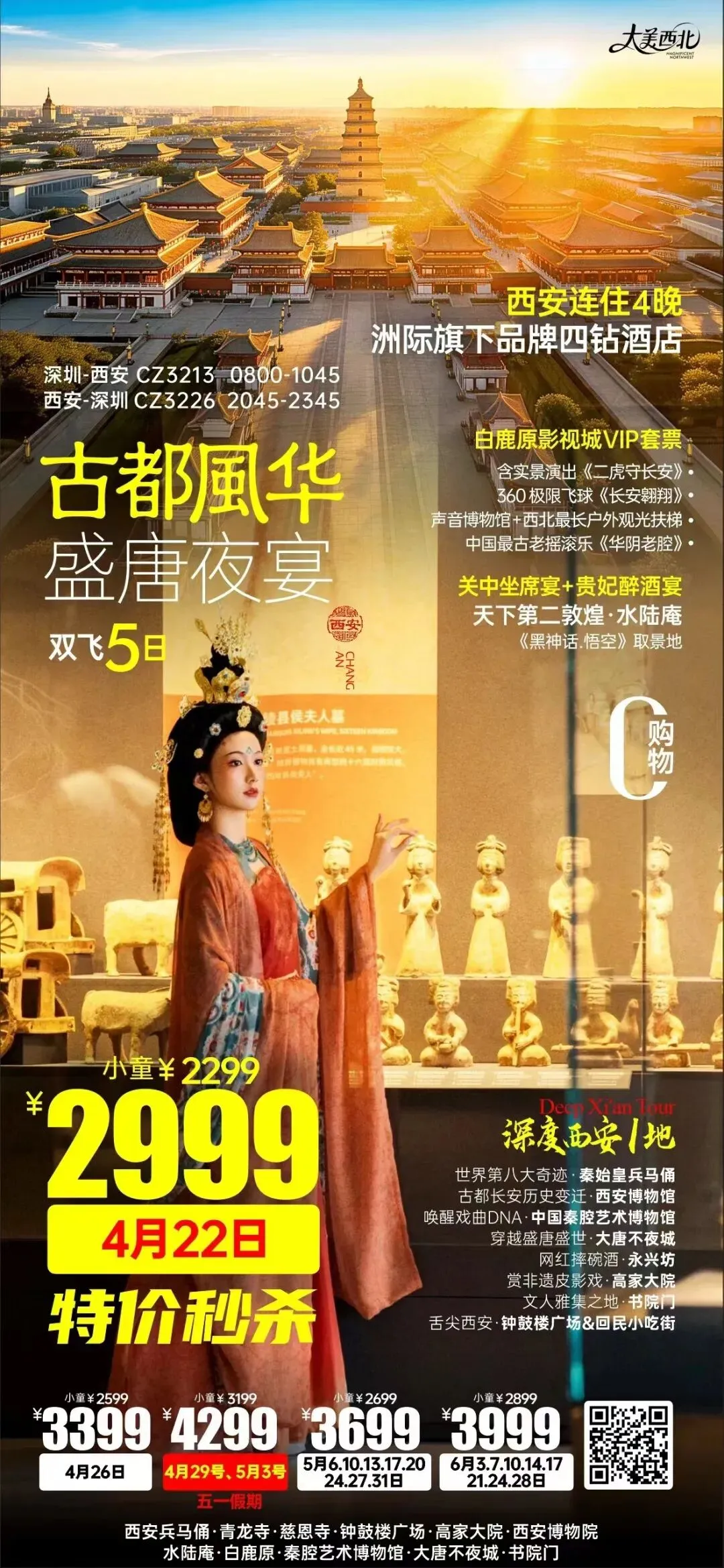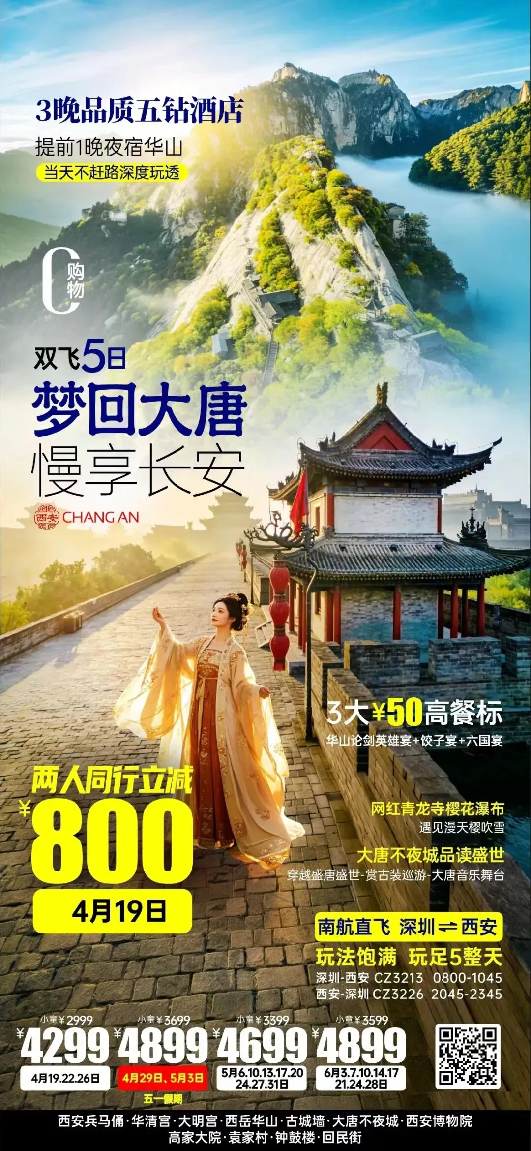 五一假期深圳出发北京或西安全景跟团游:天安门故宫长城颐和园;兵马俑华清宫华山大唐不夜城双城联游,纯玩无购物,一站式打卡古都精华