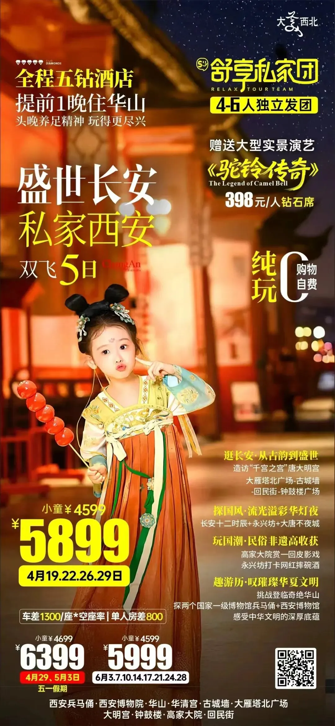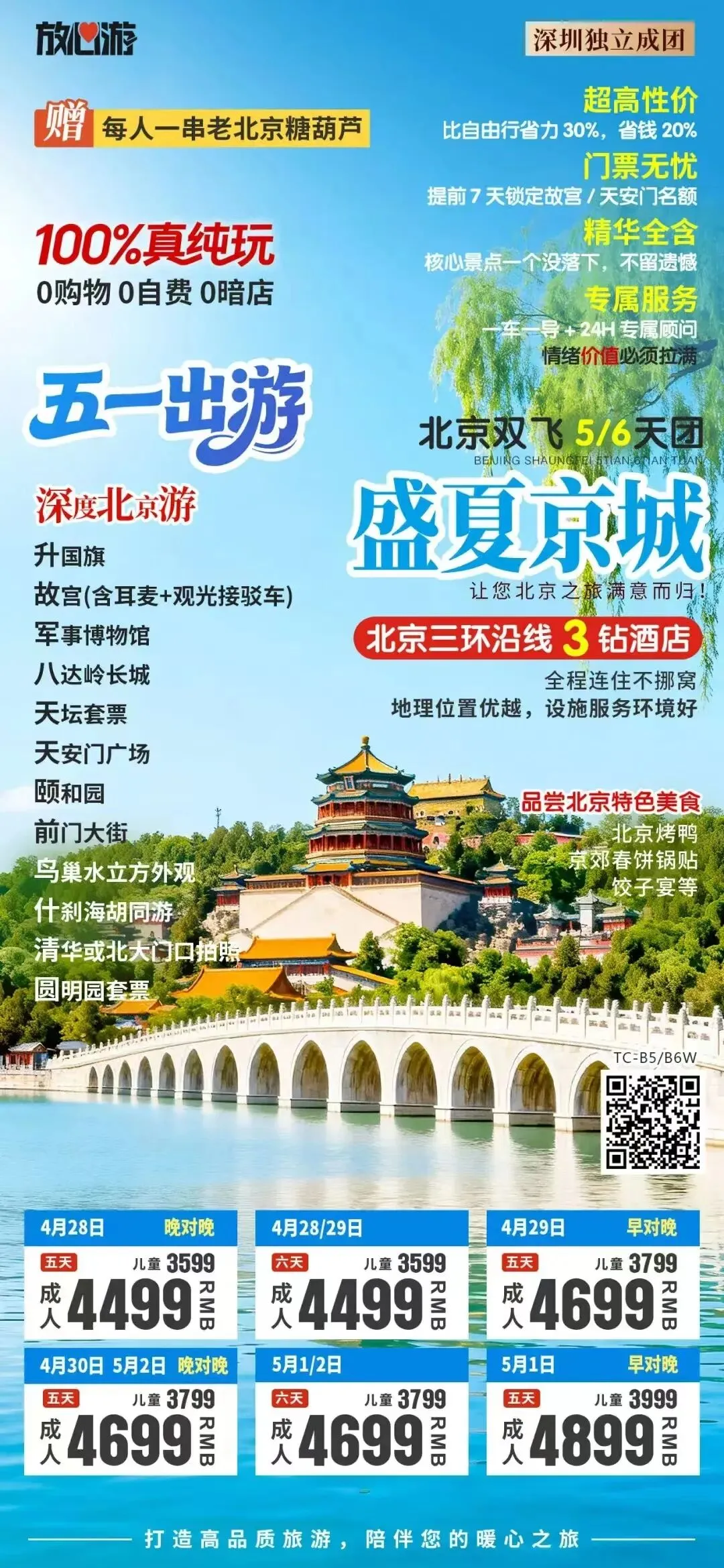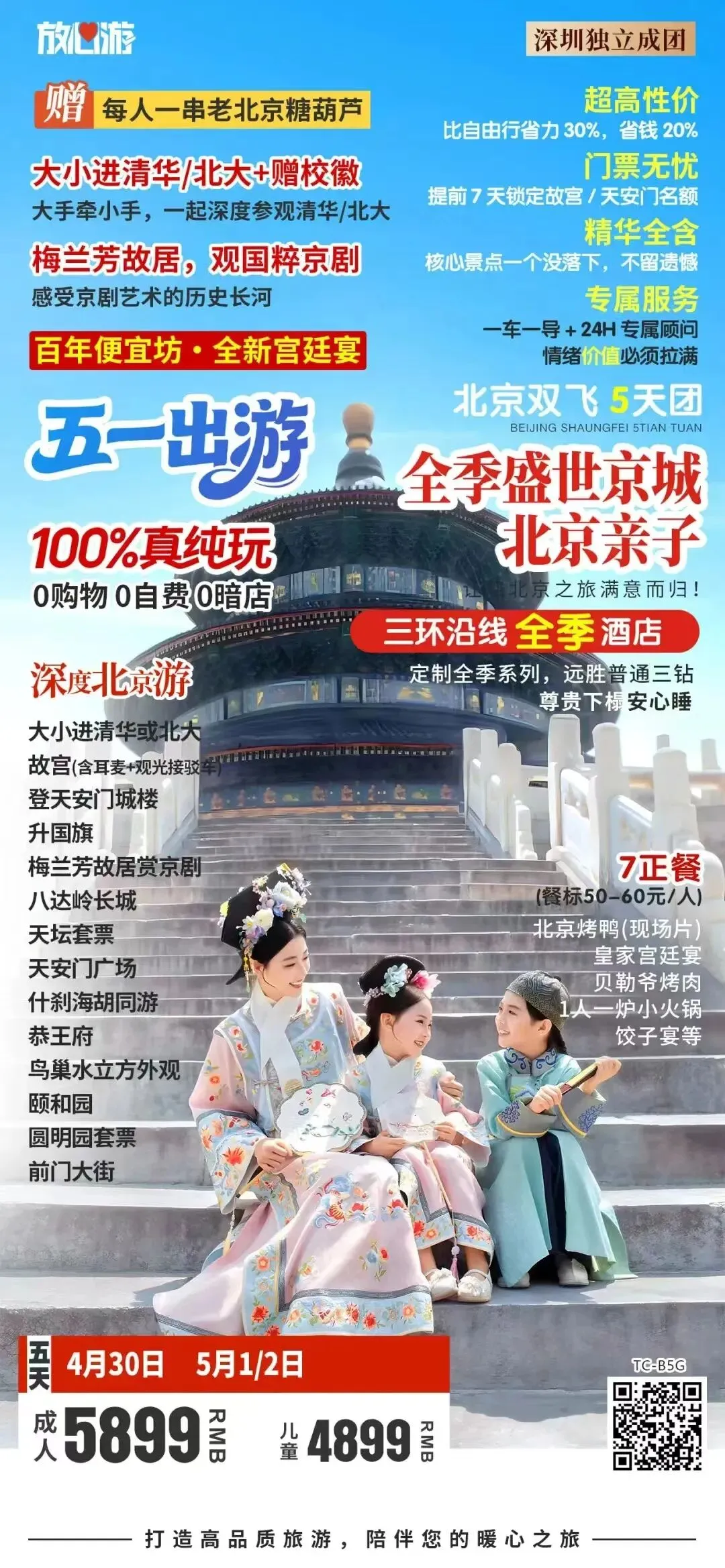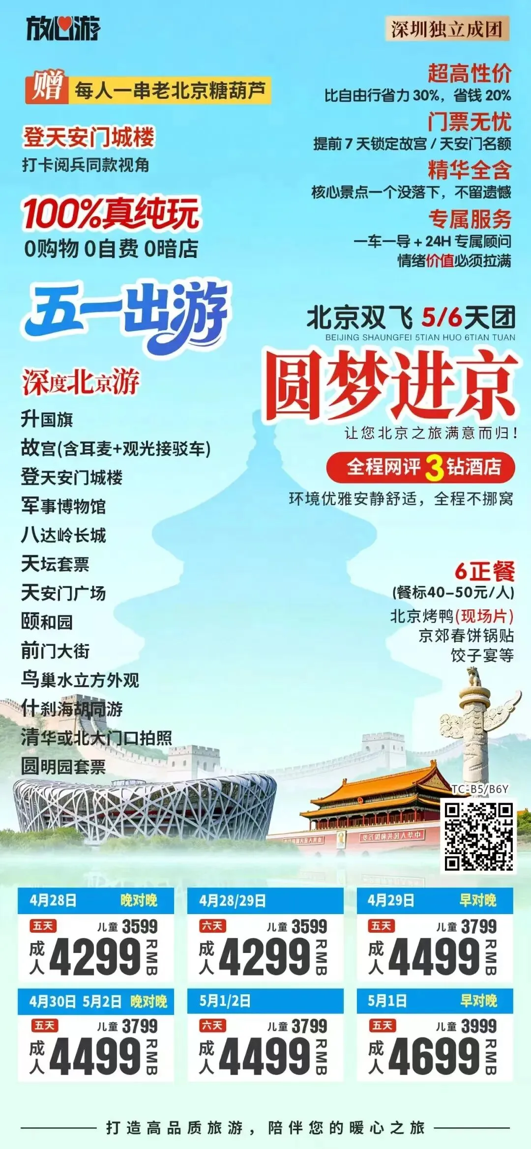 五一假期深圳出发北京或西安全景跟团游:天安门故宫长城颐和园;兵马俑华清宫华山大唐不夜城双城联游,纯玩无购物,一站式打卡古都精华