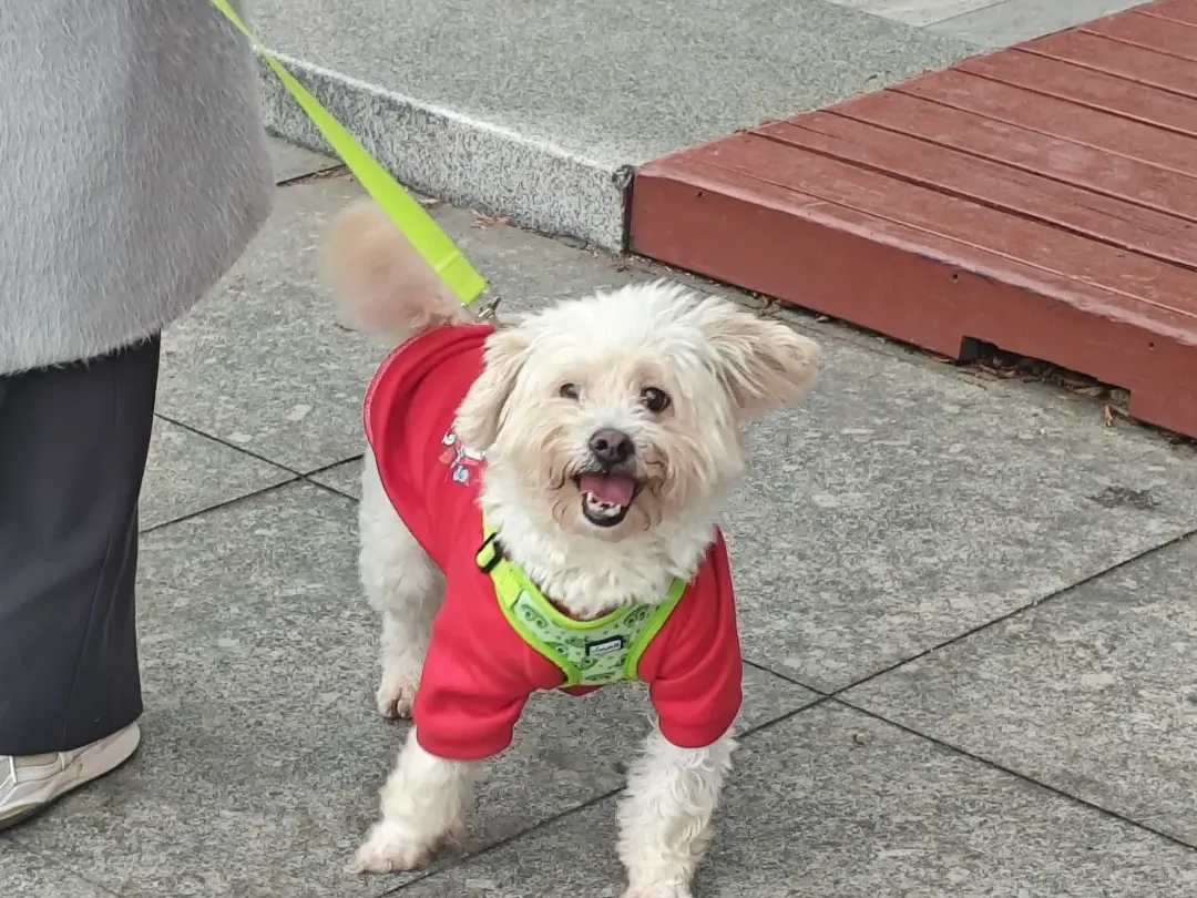 是一只胖乎的小比熊,非常活泼。以前被虐待过,身上有一道疤,但长毛遮住不影响颜值!也一点不记仇!特别喜欢出门玩!非常贪吃!