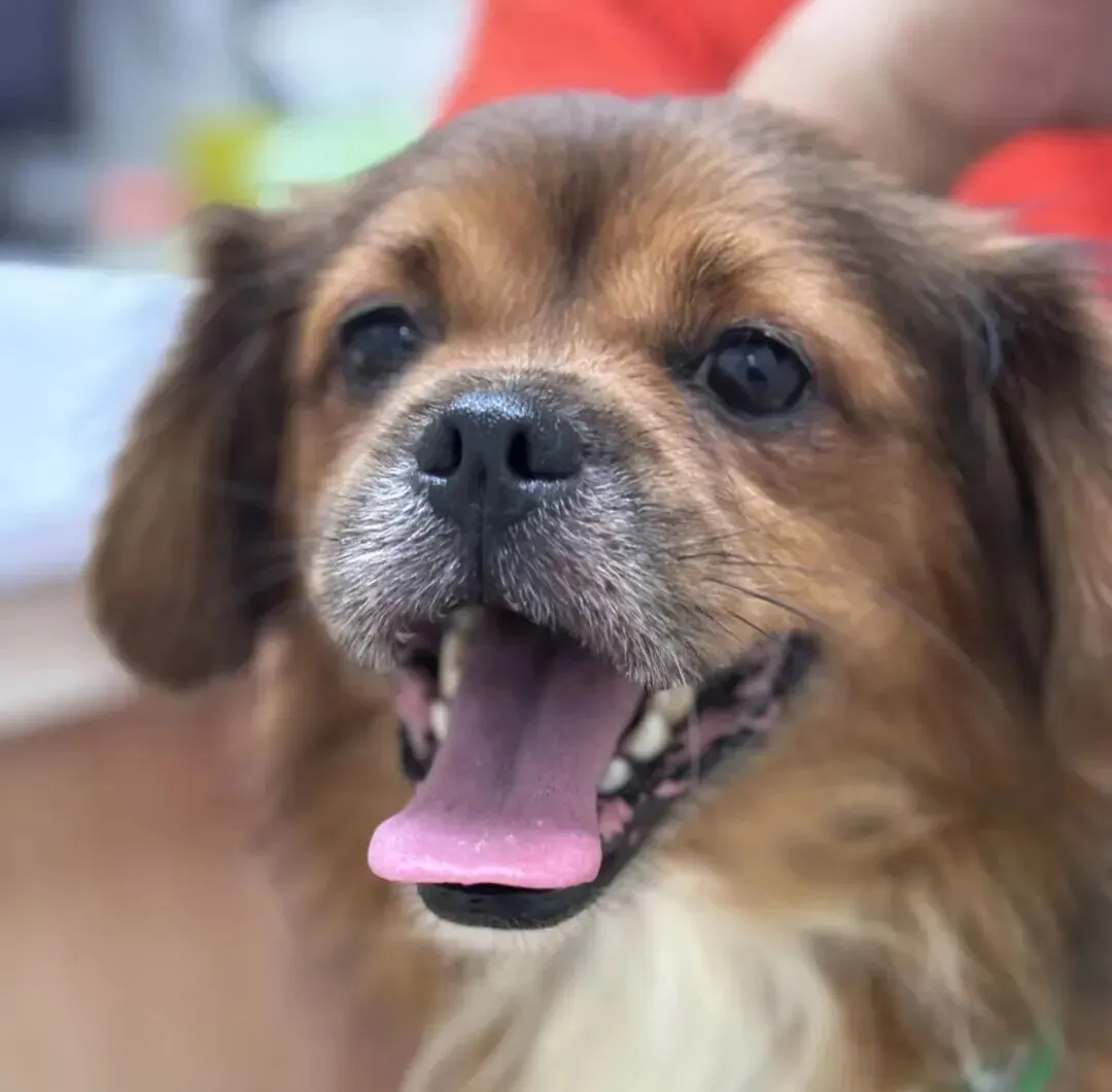 蝴蝶犬小体型,性格活泼粘人,很亲人。有点小龅牙。