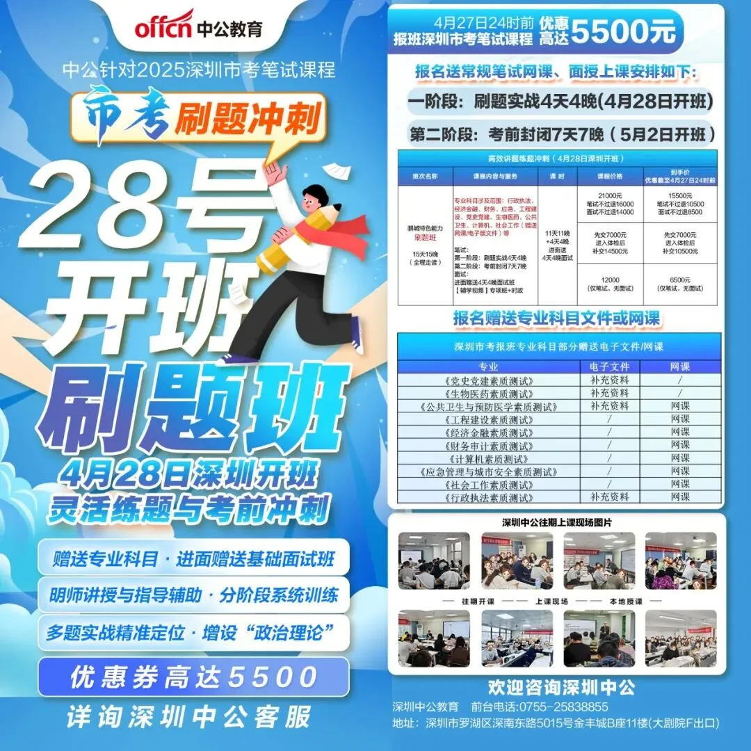 【深圳市考课程开班通知】刷题班4月28号深圳开课