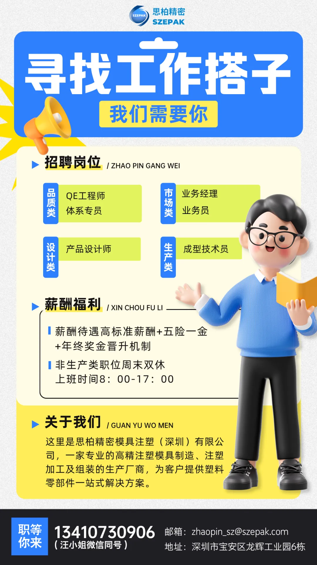 3) 能看懂简单的产品图纸,了解常用的工程塑料特性者优先。