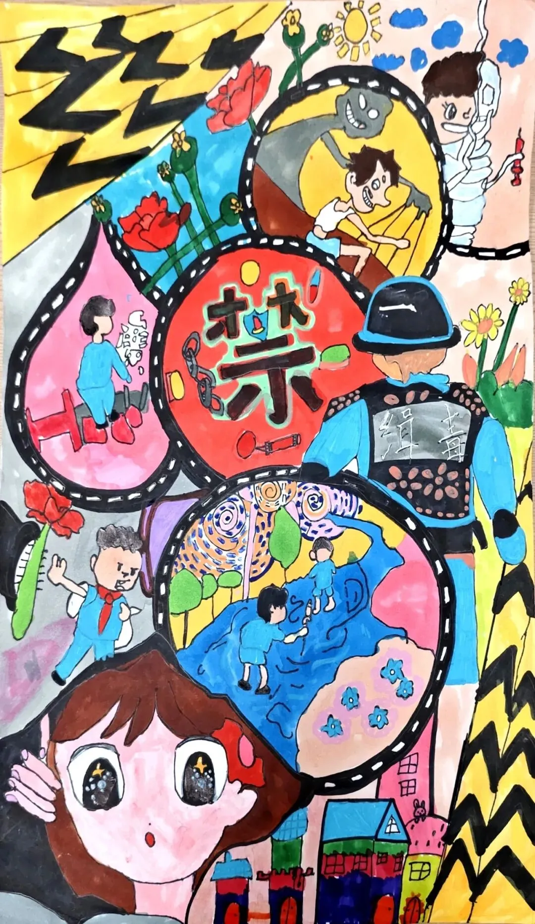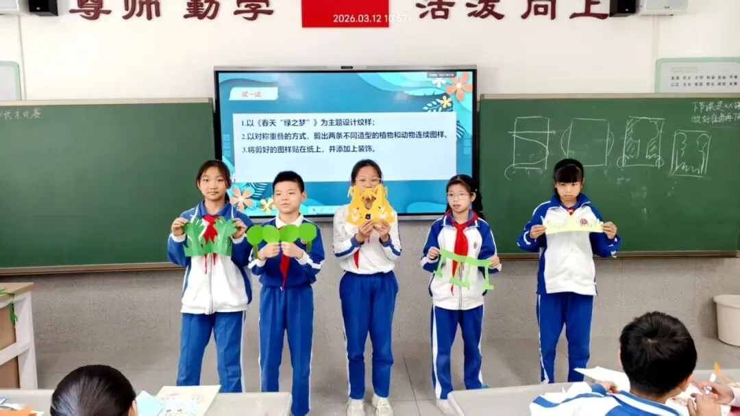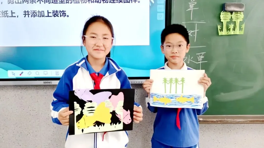 结合各年级孩子的年龄特点,我们将红色教育融入课堂教学,爱祖国、爱人民、爱和平的意志,正通过教材中一件件美术作品向学生娓娓道来:低段孩子在练习中欣赏祖国大好河山,将热爱藏进笔墨;高段孩子在实践中体悟红色精神,让家国情怀浸润童心。