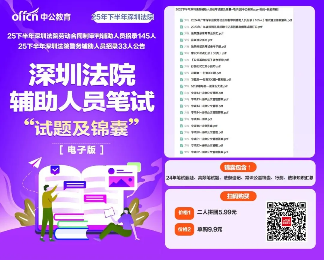 2025下半年深圳法院劳动合同制审判辅助人员招录145人公告一、招录计划