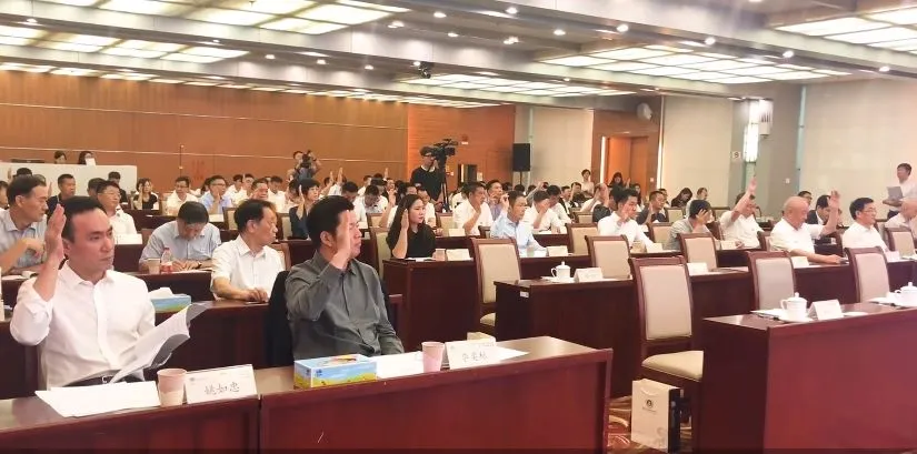 现场举手表决选举产生基金会理事会、监事会成为理事会、监事会成员和名誉理事长、名誉理事、重点捐款企业颁发聘书。