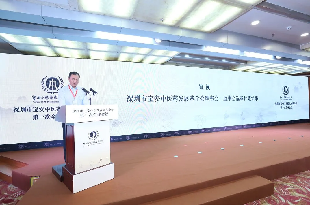 宣读《深圳市民政局关于深圳市宝安中医药发展基金会设立登记的批复》《关于陈广源同志兼任深圳市宝安中医药发展基金会理事会理事长人选的批复》《市卫生健康委关于同意陈广源同志担任深圳市宝安中医药发展基金会理事长的意见》;