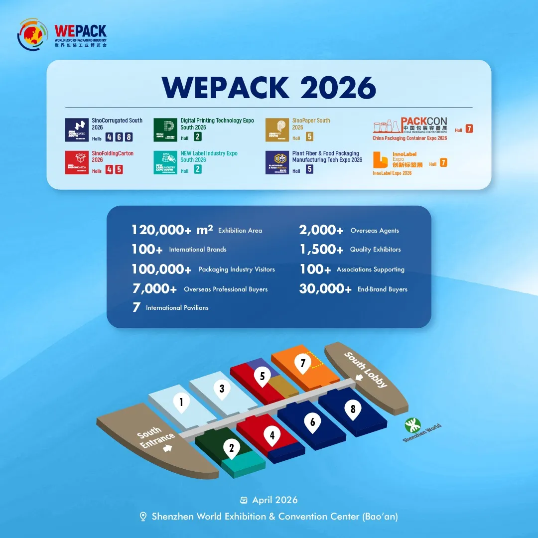 2026 WEPACK World Expo of Packaging Industry will take place from April 15 to 17 at Shenzhen World Exhibition & Convention Center (Bao'an). As an annual flagship event covering the entire packaging industry chain, the expo brings together over 1,500 leading exhibitors and 100,000+ industry visitors, featuring 8 themed exhibitions running concurrently. It serves as a core platform for technical exchanges and trade cooperation in the global packaging sector.
